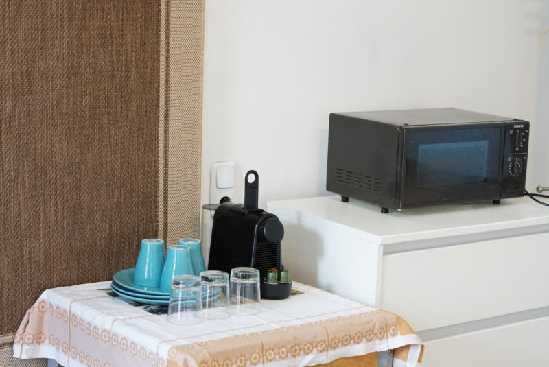 - Wasserkocher, Kühlschrank, Kaffemaschine, Mikrowelle, Toaster